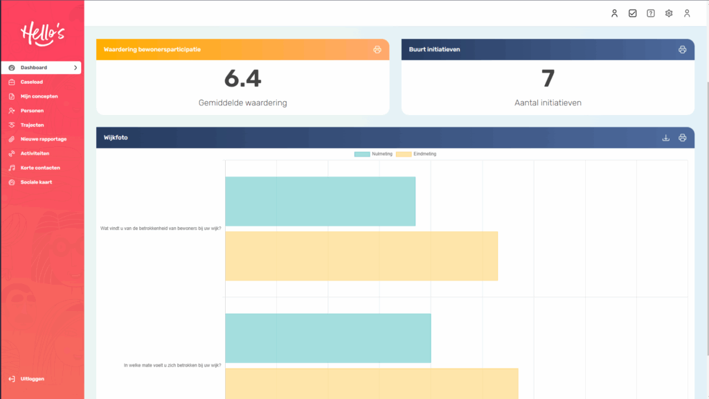Door gebruik te maken van het registratie- en rapportagesysteem Hello’s Online kan de ABCD-methodiek effectiever worden toegepast. Daarnaast kan er ook gebruik gemaakt worden van de vacaturebank Hello’s Connect, waardoor vraag en aanbod makkelijk bij elkaar gebracht kan worden.